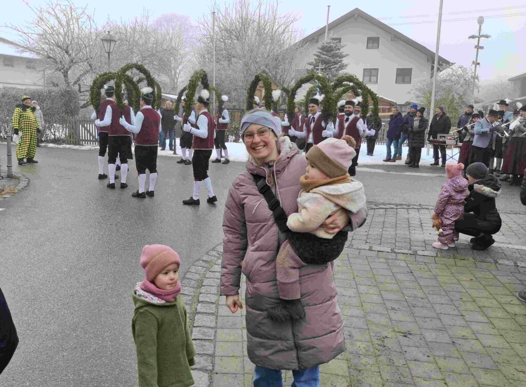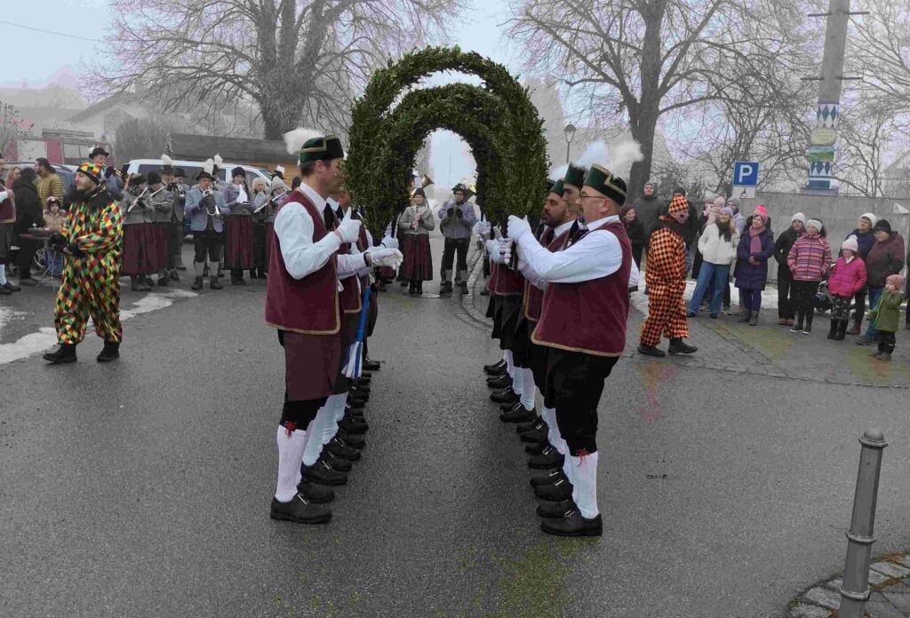 Über 50 Vereinsmitglieder und sonstige Schaulustige konnten den Auftritt unseres Patenvereins am Sonntagvormittag genießen, auch wenn es zapfig kalt war und alle schon auf das Schnapserl danach oder dazu gewartet haben.