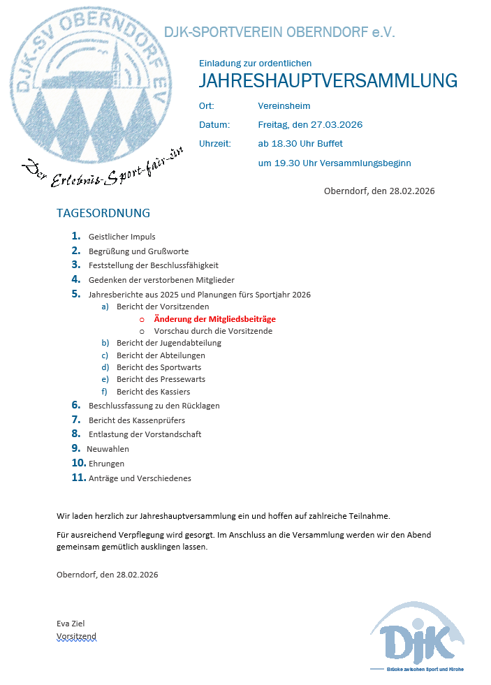 Bei der Abteilungsversammlung Fitness und Gesundheit am Freitag, 20.02.2026 im Oberndorfer Sportheim konnte Abteilungsleiter Martin Ostermaier nicht ohne Stolz über weiter gestiegene Mitgliederzahlen berichten. Von gut 1200 Vereinsmitgliedern sind 720 der Abteilung Fitness und Gesundheit zugehörig und mit einer weiteren Spielegruppe, einer Jugendlaufgruppe und Kangoojump sind auch drei neue Sportangebote hinzugekommen.