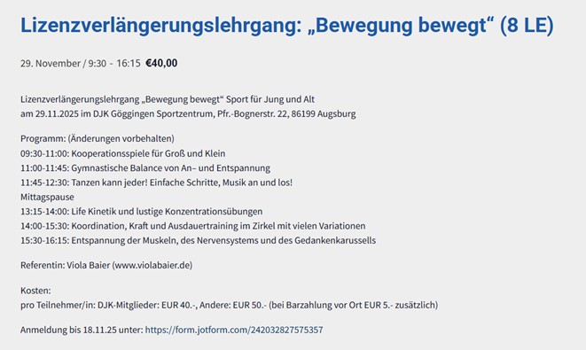 Lizenzverlängerungslehrgang: „Bewegung bewegt“ (8 LE) – DJK Landesverband Bayern
